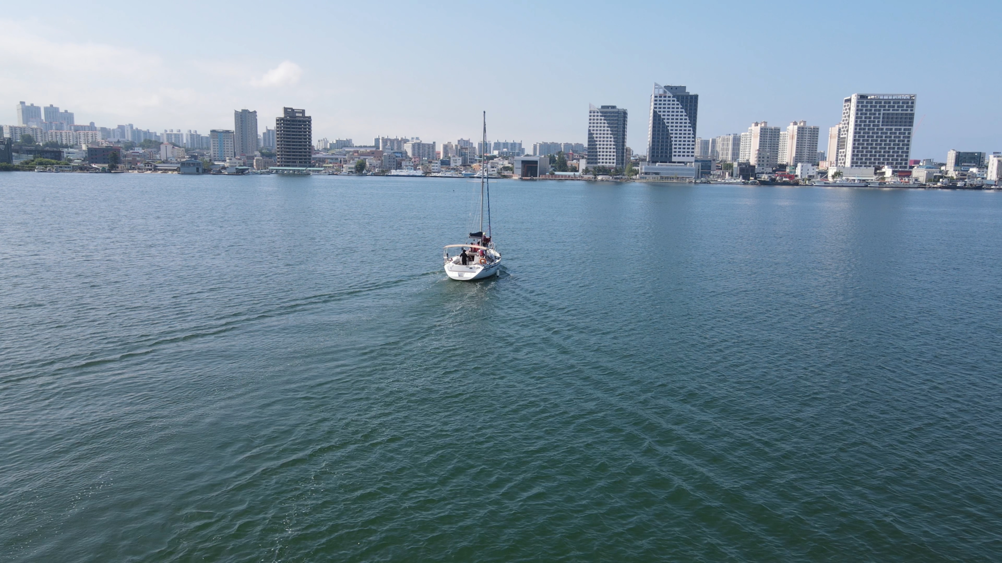 2일차에 요트를 탔는데, 1만원만 추가하면 드론에서 찍은 영상을 준다네?
